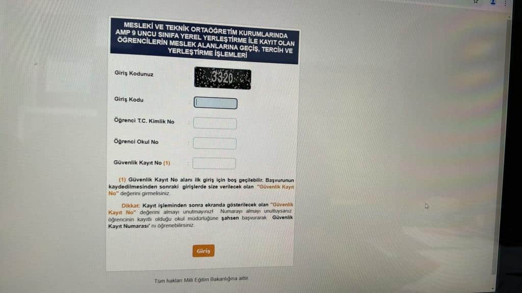 Tercihlerinizi kaydettikten sonra tercih ekranının üst kısmında beliren güvenlik kayıt kodunu not almayı unutmayın lütfen. Yeniden sisteme girme ihtiyacı duyarsanız o kodu kullanmanız gerekmektedir.